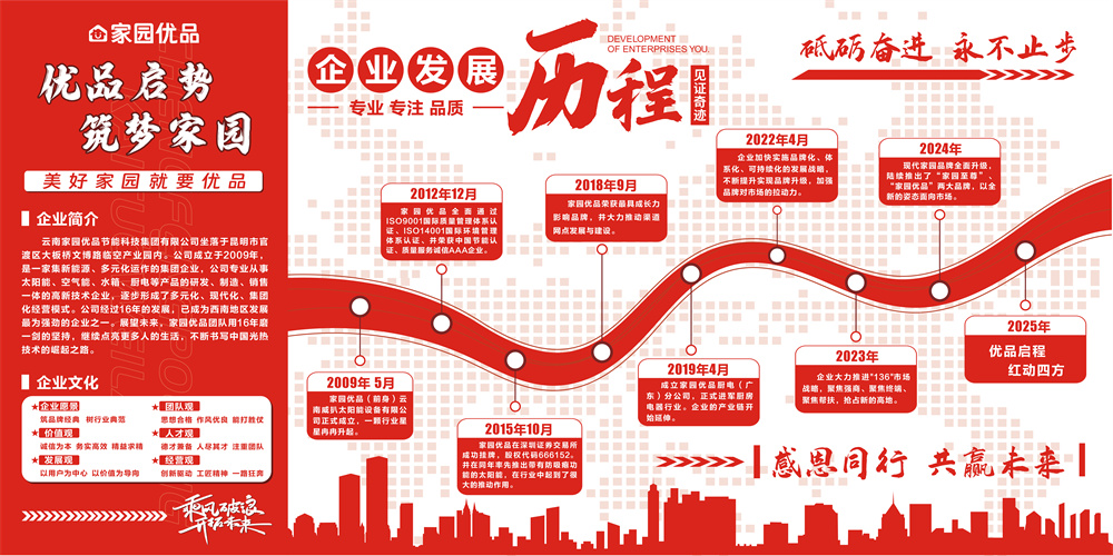 2009年5月家园优品(前身)云南威扒太阳能设备有限公司正式成立,一颗行业星星冉冉升起。